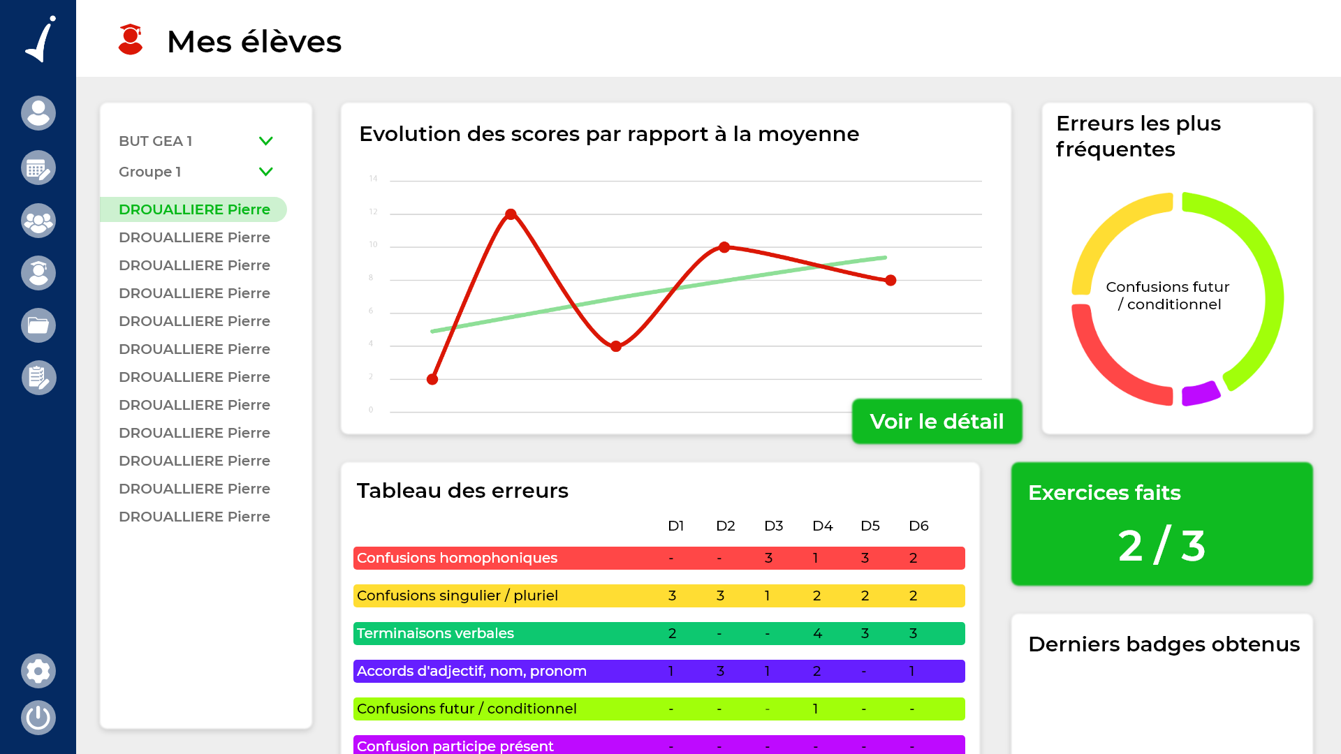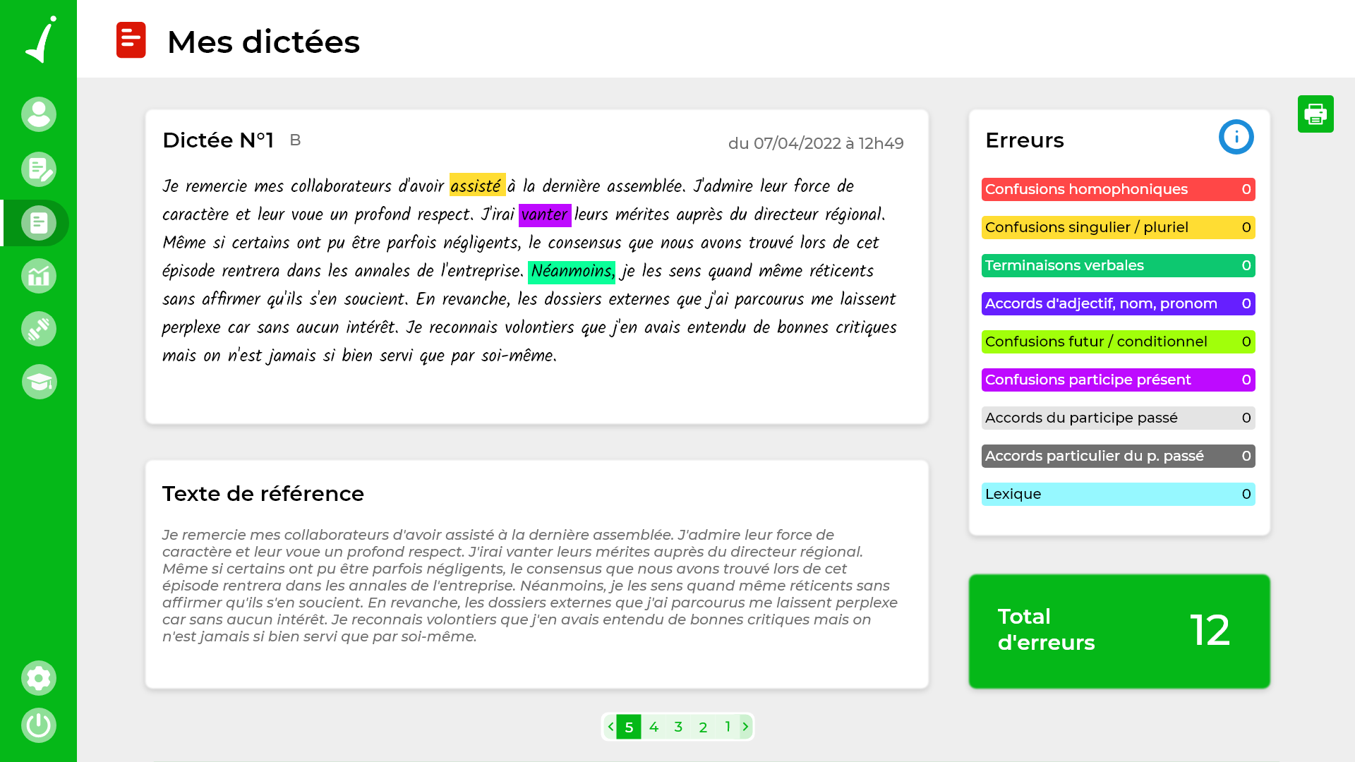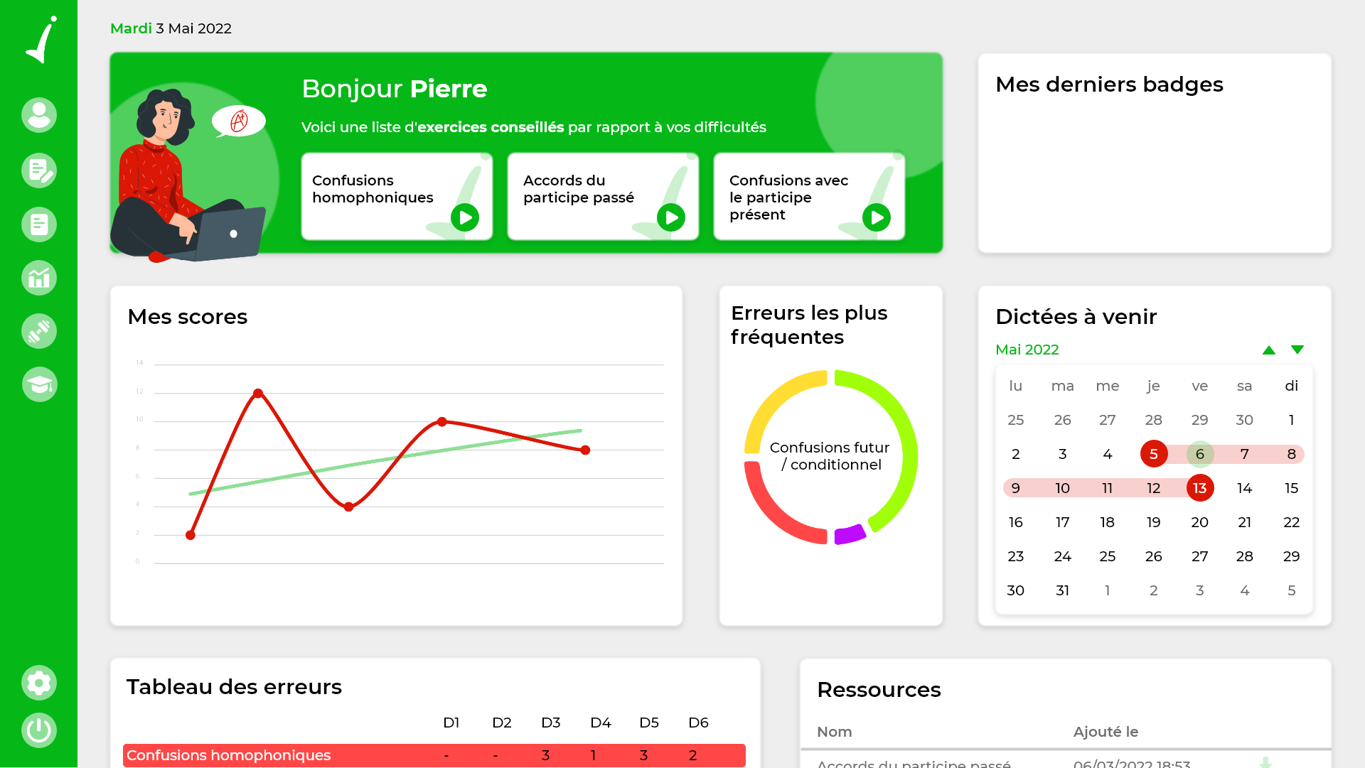 Chaque nouvelle dictée effectuée met à jour des graphiques. Votre ado et vous visualisez les progrès en cours et les lacunes qui restent.