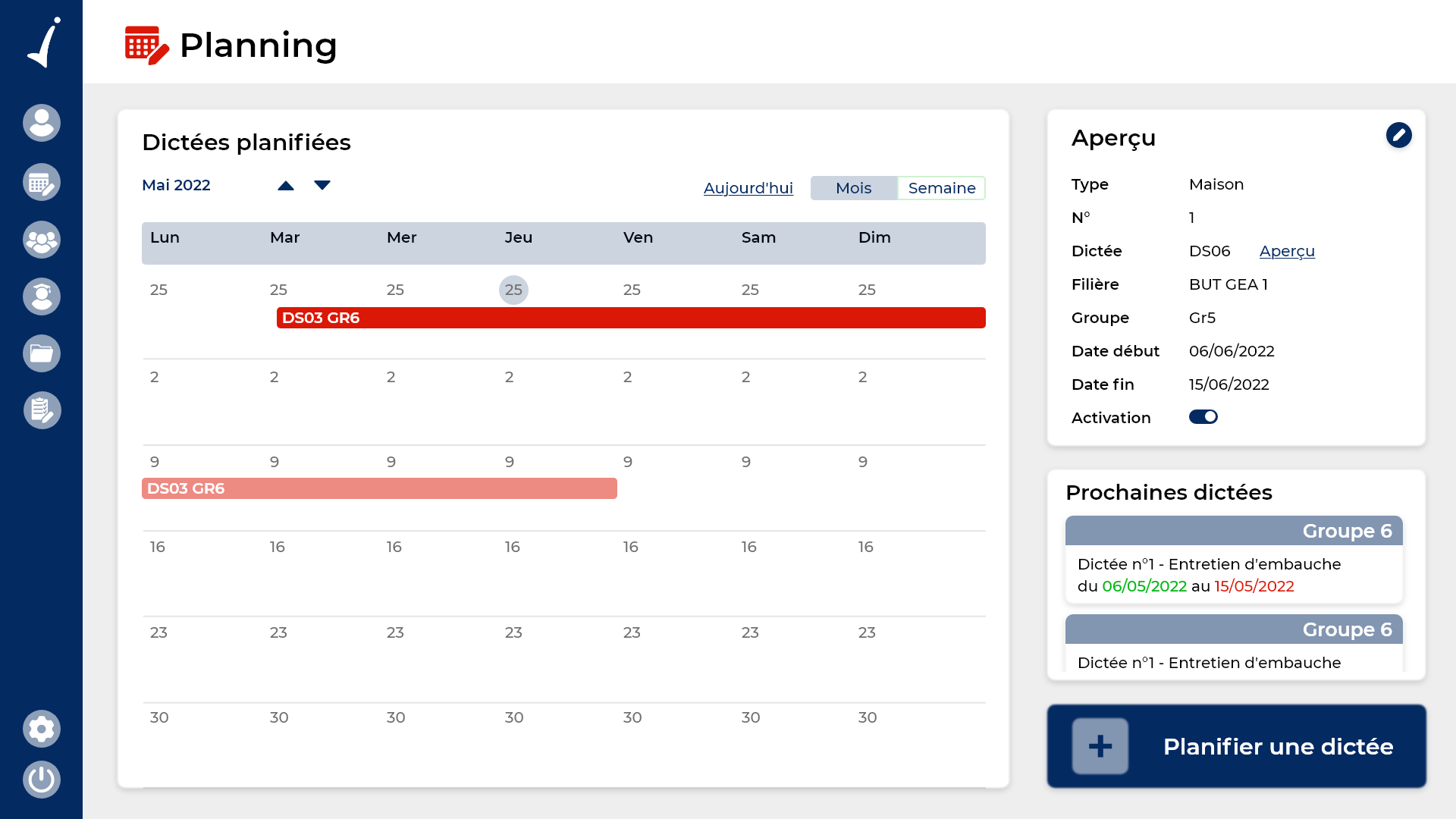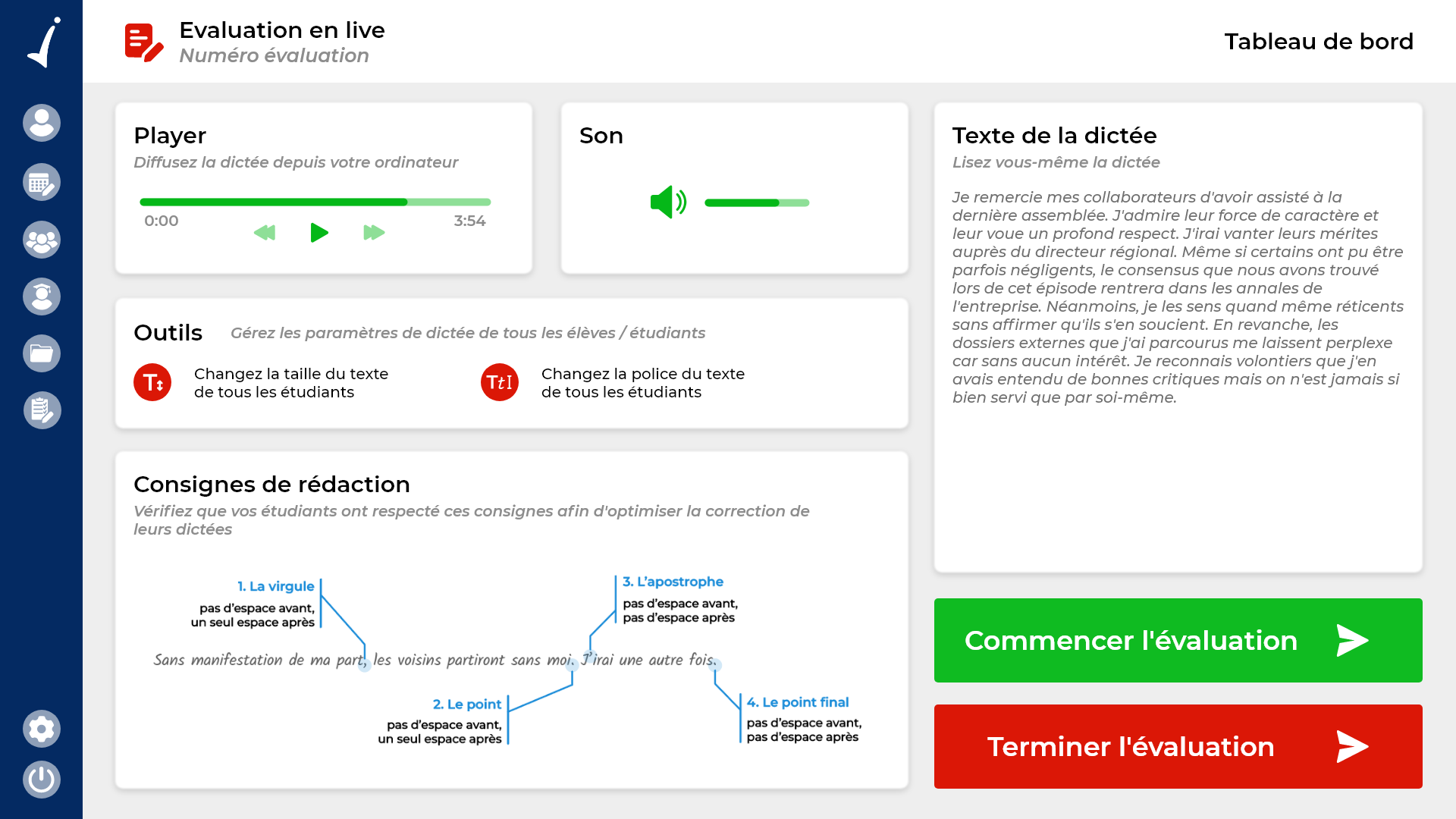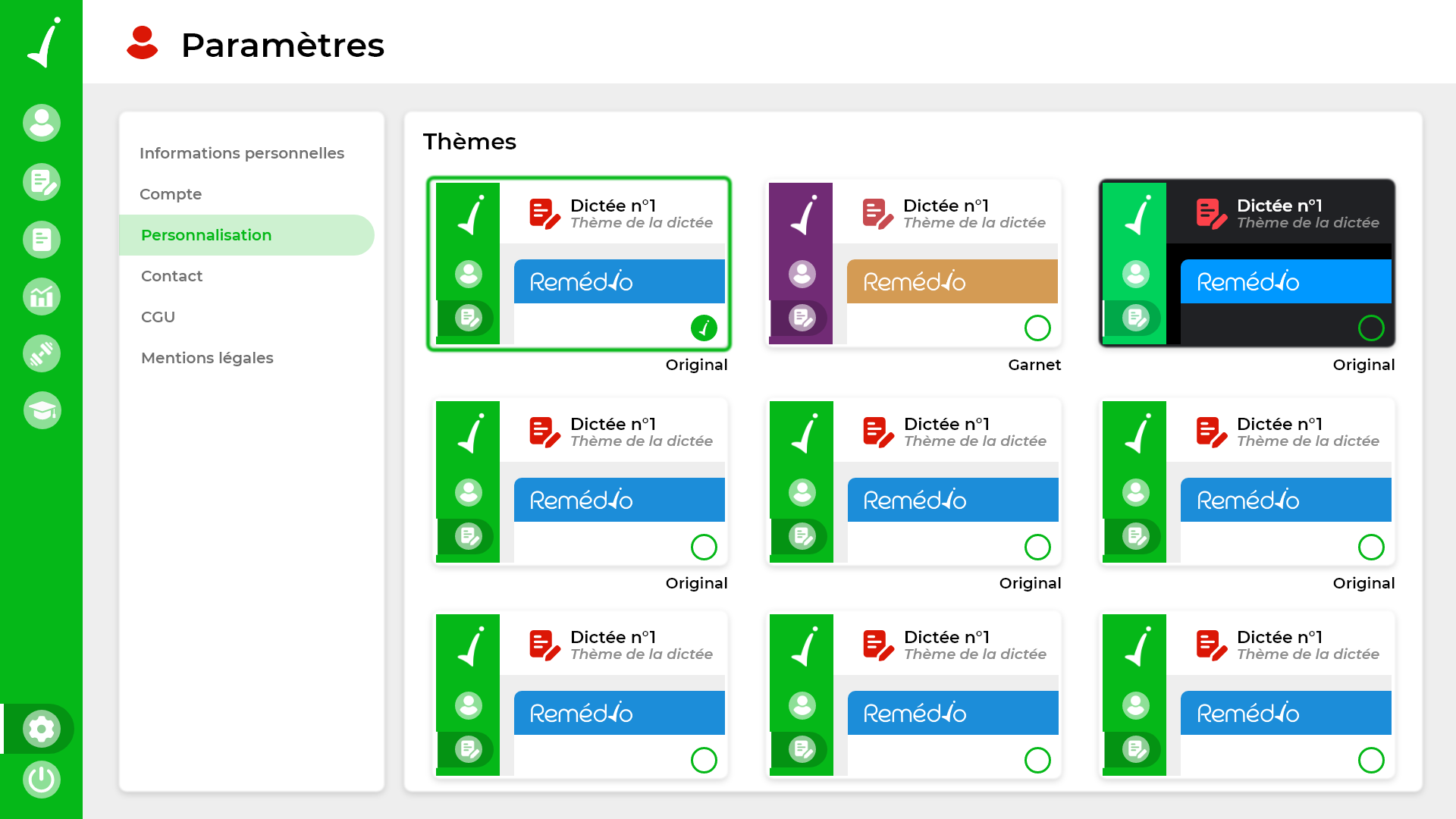 Le parent peut paramétrer les textes des dictées, leur fréquence, analyser les corrigés et visualiser les lacunes et les progrès.
